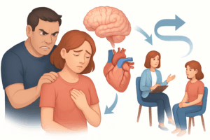على الرغم من أن TMS يصحح الوظائف الكيميائية العصبية، إلا أنه يجب دمجه مع العلاج النفسي (العلاج السلوكي المعرفي – CBT أو غيره) لتحقيق نتائج مستدامة. التحفيز المغناطيسي يفتح “نافذة مرونة” في الدماغ، مما يجعل العلاج النفسي أكثر فعالية في هذه الفترة.
